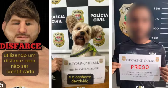 Com o disfarce, ele conseguiu entrar no estabelecimento e levar o cão sem despertar suspeitas imediatas.