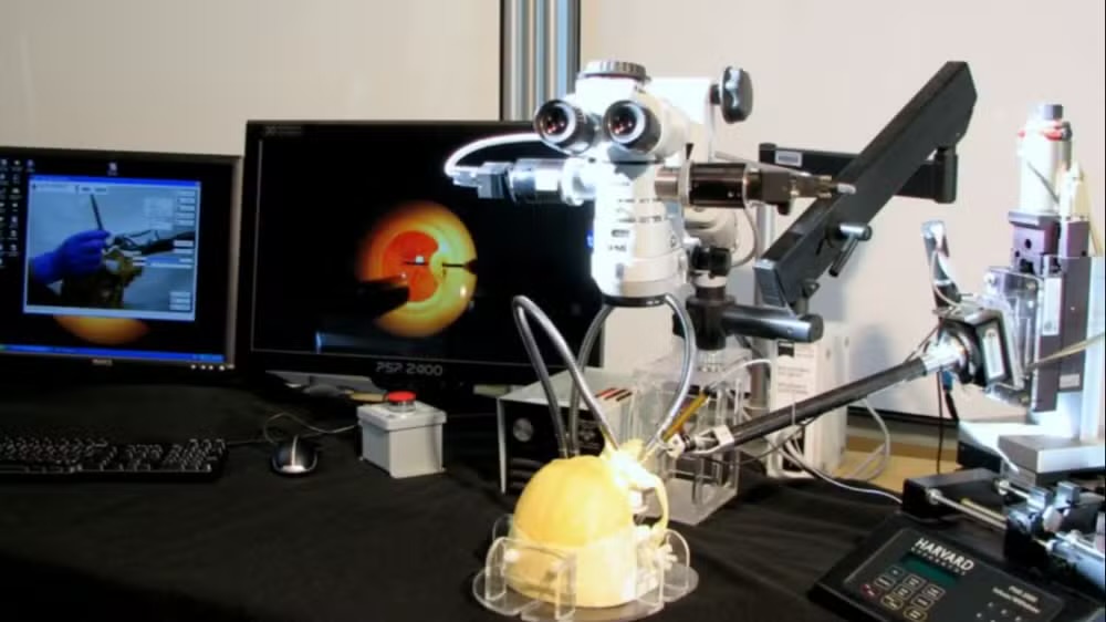 O grande desafio está no tamanho dos vasos, que medem entre 100 e 250 micrômetros — menores que um fio de cabelo humano. Para superar essa limitação, os cientistas acoplaram um sistema autônomo ao robô cirúrgico Steady-Hand Eye Robot (SHER). Com auxílio de imagens de microscopia e tomografia OCT, o robô localiza a veia, posiciona a agulha, perfura o vaso e retira o instrumento com extrema precisão.