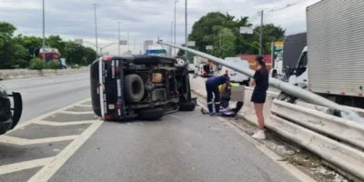 • Viatura da Polícia Civil capota na Marginal Tietê e deixa dois agentes feridos